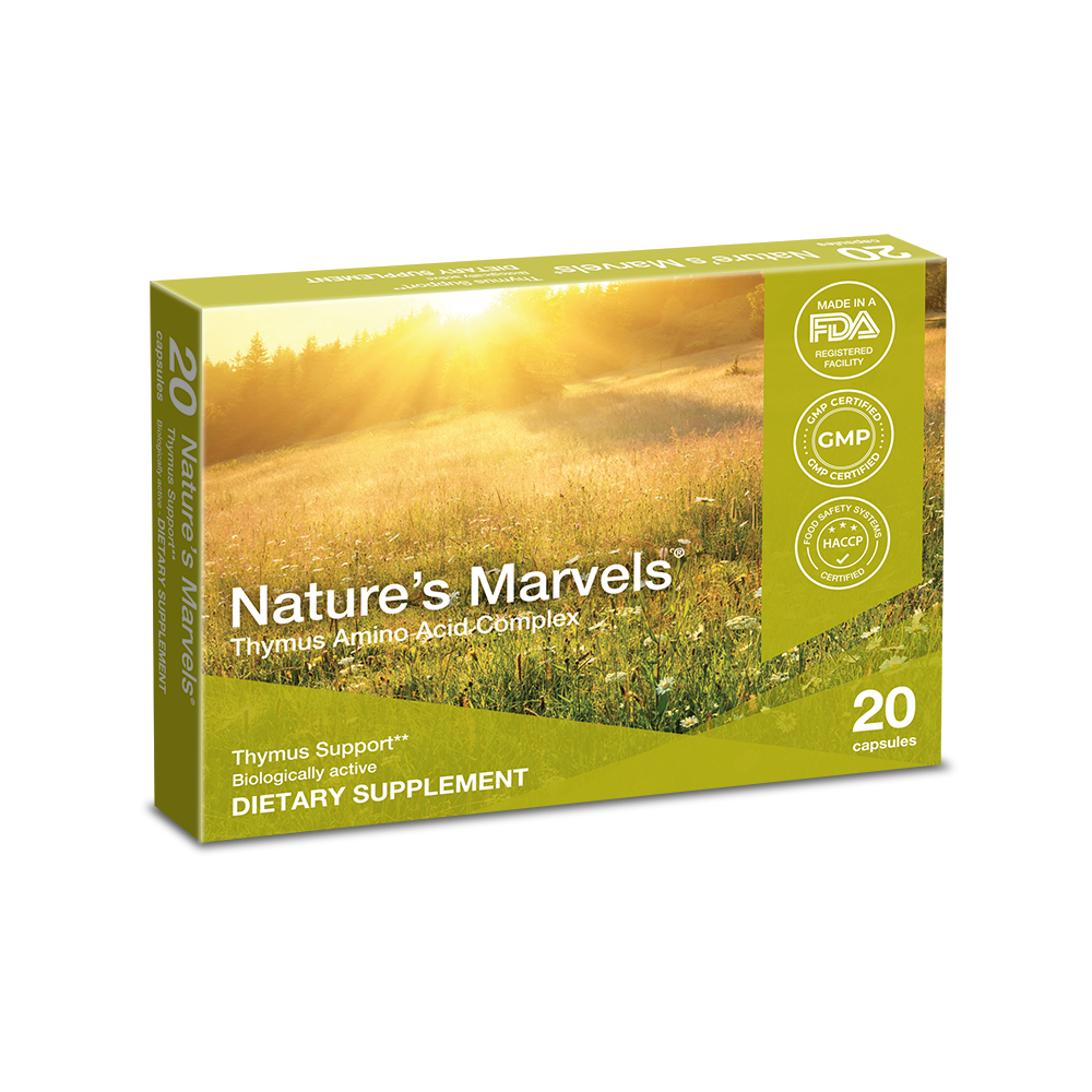 Nature's Marvels Thymus Bioregulator contains thymus-specific peptide bioregulators to support immune system regulation and healthy T-cell function. The thymus is a critical gland for immune education and declines with age, this formula helps...