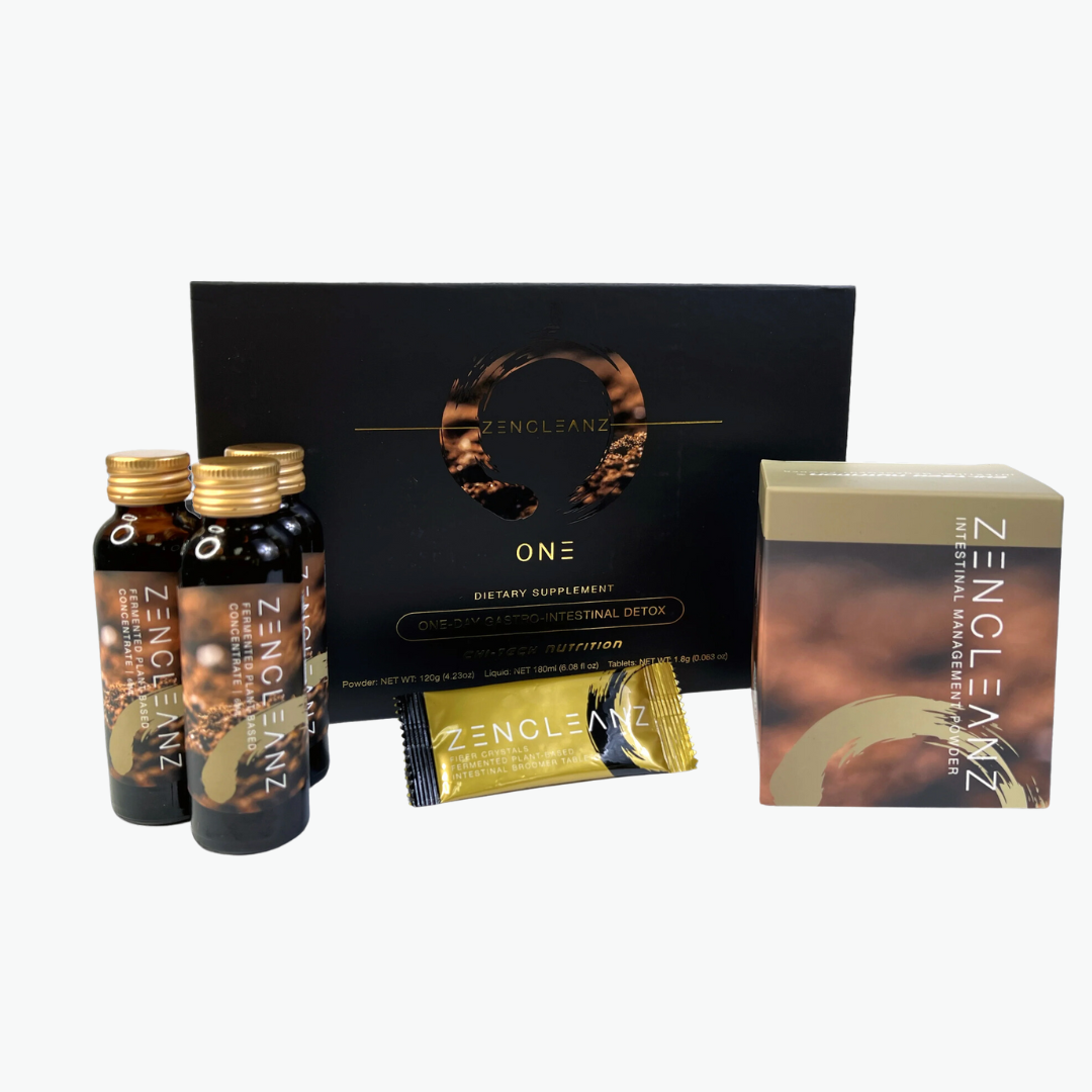 ONE is the ZenCleanz flagship kit. ONE is a revolutionary intestinal mucoid plaque intestinal and colon cleanse that has the power to clear intestinal plaque from the body in ONE DAY. This power-packed fermented enzyme cleanse contains only all natural and organic ingredients, including our liquid Hygeia (formerly known as Detox-S), Intestinal Management powder, and Fiber Crystals. Together, these enzymes help clear the body of long-term intestinal plaque: the contributory source of all illness. ONE discharges old waste, absorbs toxins from the intestinal walls, helps regulate and restore intestinal flora, and improve immunity.