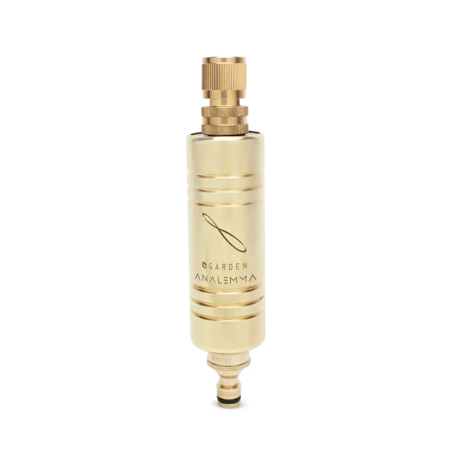 The Garden Aǹalemma unit has sturdy brass connectors on each end. Using widely available garden connectors, you can easily attach the Garden Aǹalemma unit to the ends of your pipe and hose.