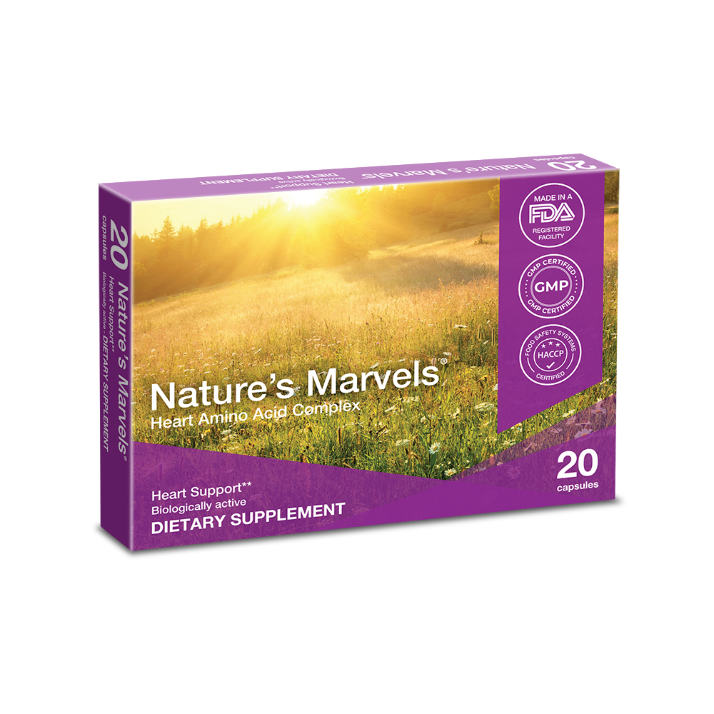 Nature’s Marvels™ Heart Bioregulator is an amino acid complex that helps to regulate the heart, combating heart related conditions such as hypertonia, hypertension, myocarditis, atrial fibrillation, coronary artery disease and heart failure.